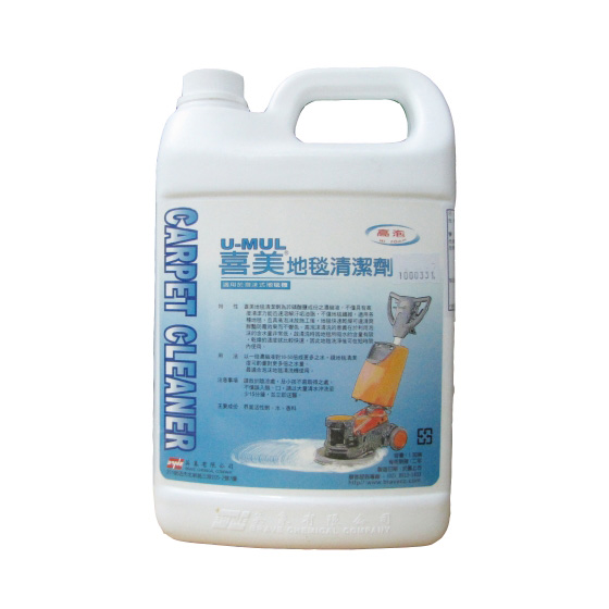 產品特色:喜美地毯清潔劑為非磷酸鹽成份之濃縮液不僅具有高度清潔力,能迅速溶解汙垢油脂且具高泡沫,故施工後,地毯快速乾燥可達清爽鮮,豔防霉效果而不變色。